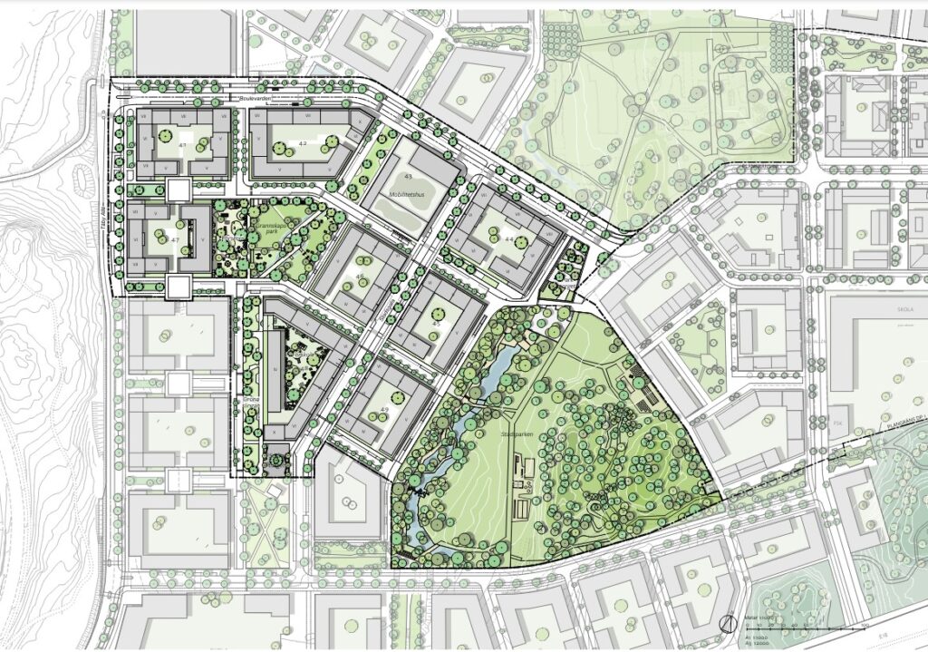 - Södra Stadsparken utvecklas som stadsdelens gröna hjärta med lekytor, ängsmarker och promenadstråk